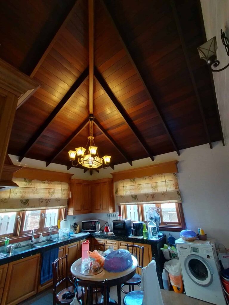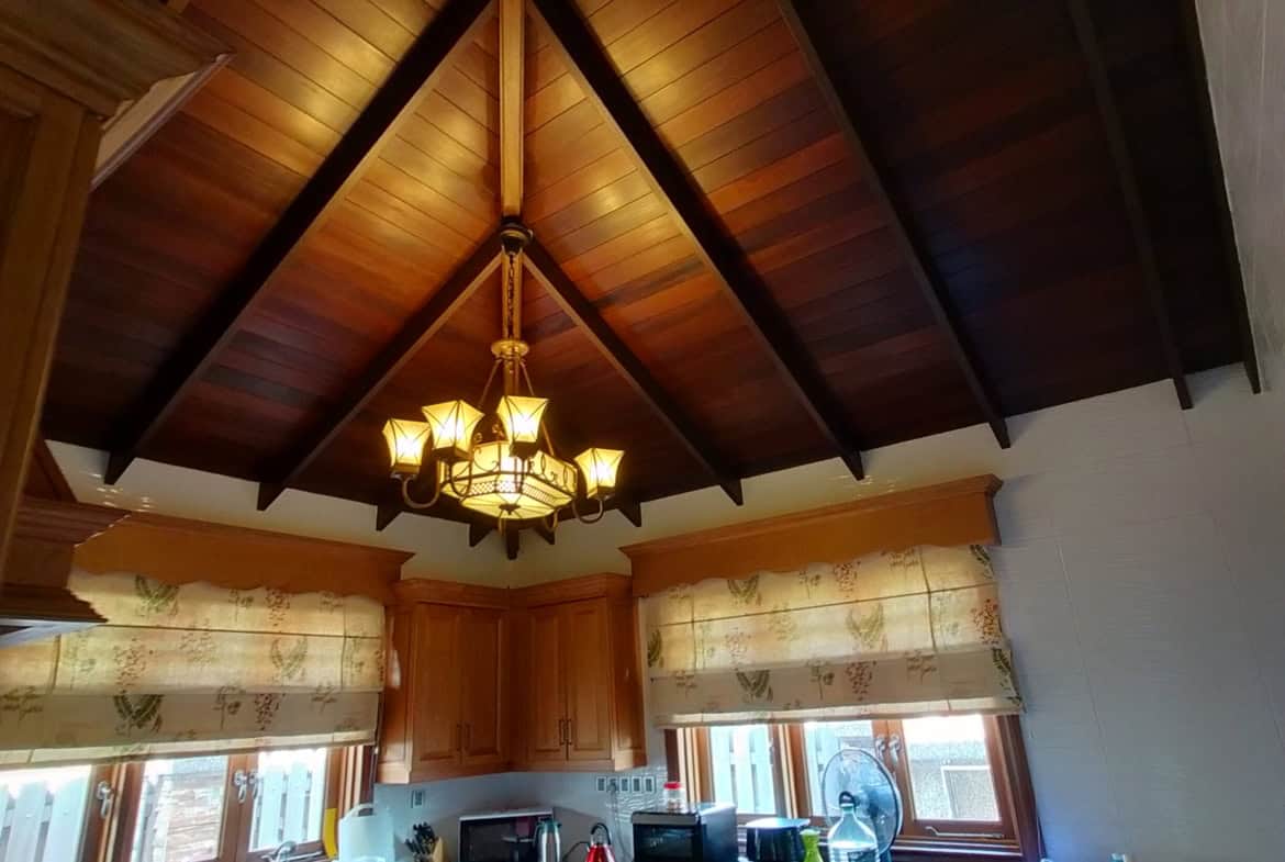 7. Chengal timber strip ceiling board fixed to the rafter by artisan