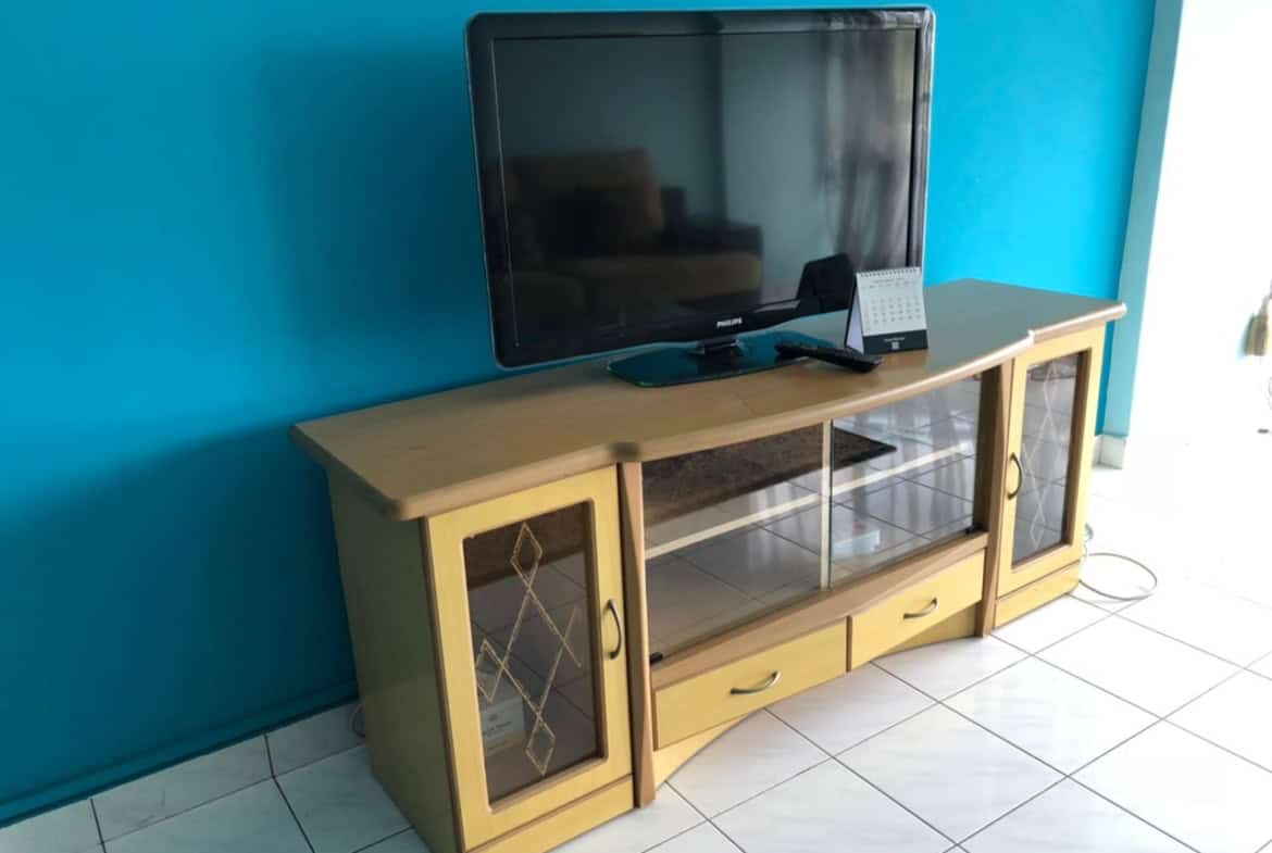 -Fully turnished with sofa, dining table, TV, TV cabinet, bedroom set, curtain, fridge and washing machine