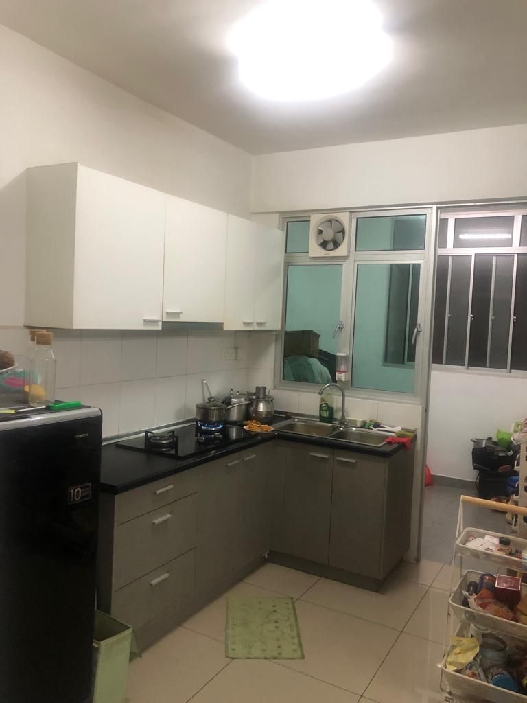 -Built in kitchen cabinet, plaster ceiling and cooker hob