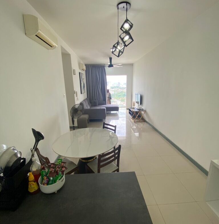 -Fully furnished with sofa, curtain, dining table, bed frame, mattress, fridge and washing machine