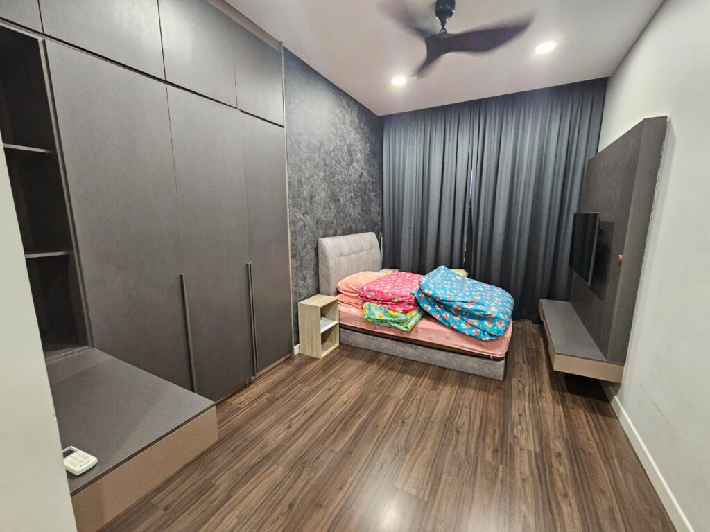 -Fully furnished with TV, curtain, bed frame, mattress, wardrobe, microwave and fridge