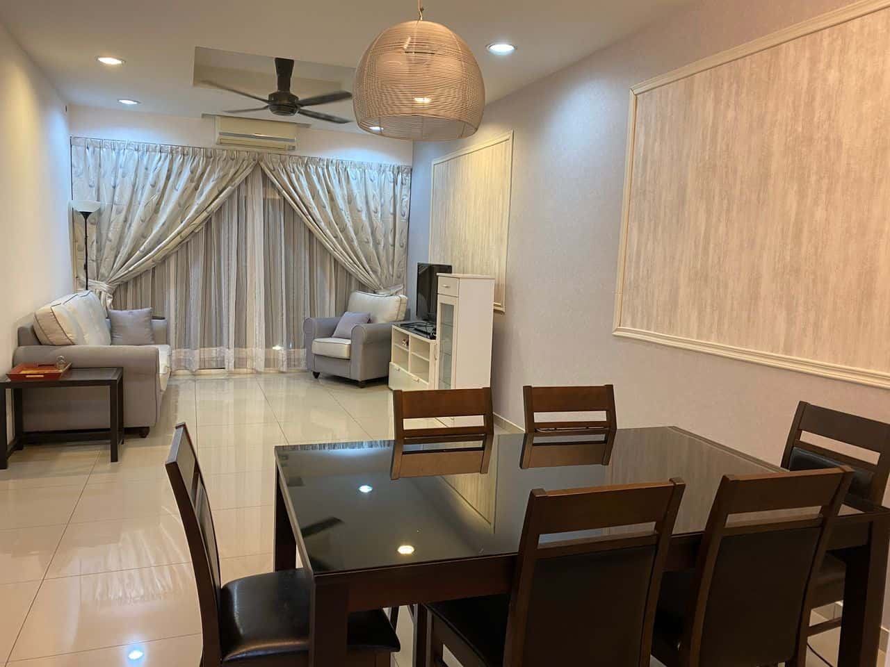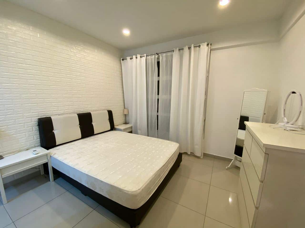 -Fully furnished with sofa, TV, dining table, curtain, wardrobe, bed frame, mattress, fridge and washing machine